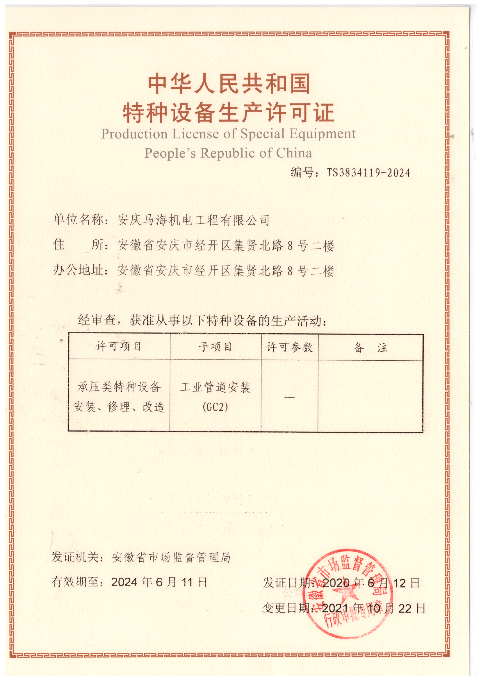 公司名稱:安慶馬海機電工程有限公司 公司地址:安徽省安慶市大觀區(qū)集賢北路8號 |