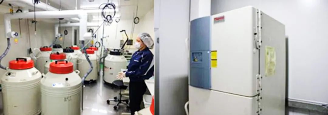 細(xì)胞的凍存過程需要一系列程序降溫,一般為4 ℃下存放30min。轉(zhuǎn)放-20 ℃ 1 h,再轉(zhuǎn)入-80—-70℃過夜,之后才可以轉(zhuǎn)移到液氮內(nèi)(-196℃)。因此儲存區(qū)必須配備冰箱、低溫冰箱、超低溫冰箱和液氮罐等設(shè)備。
