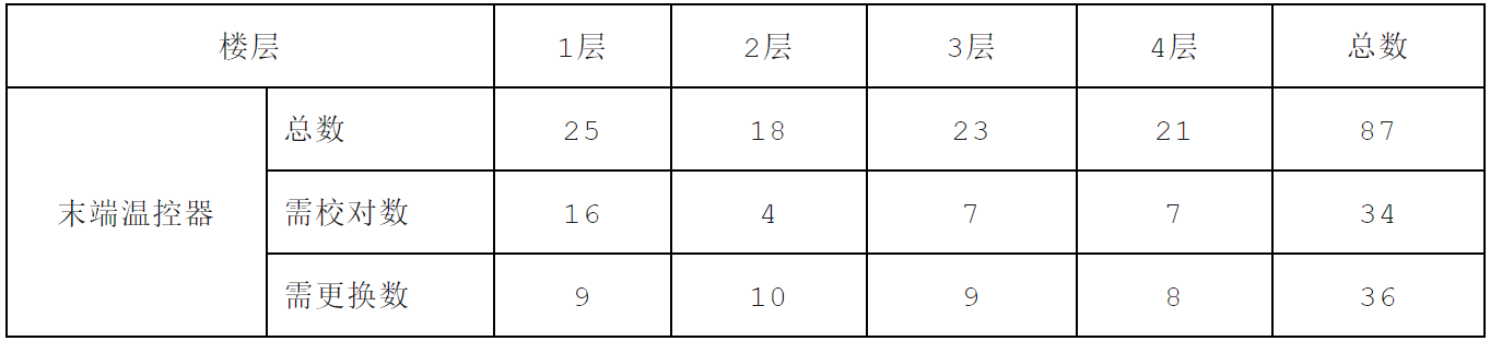 5)房間溫度由氣動溫控器控制,檢測發(fā)現(xiàn)在總數(shù)87個溫控器當(dāng)中有34個需要校對,36個需要更換.表1給出了溫控器檢測和維修情況。