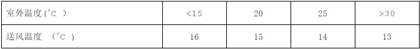 表3 冷風(fēng)道溫度設(shè)定值與室外溫度的關(guān)系